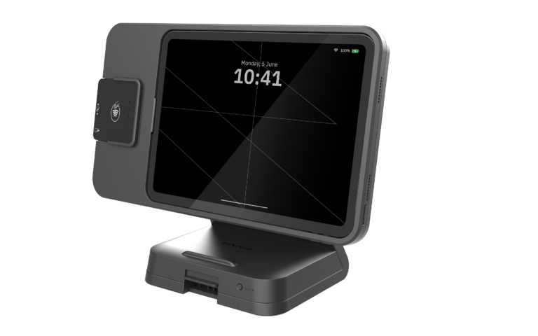 Unser bisher kompaktester und wirtschaftlichster Tablet-Ständer mit Hochgeschwindigkeits-Datenverbindung und integriertem Ladegerät.